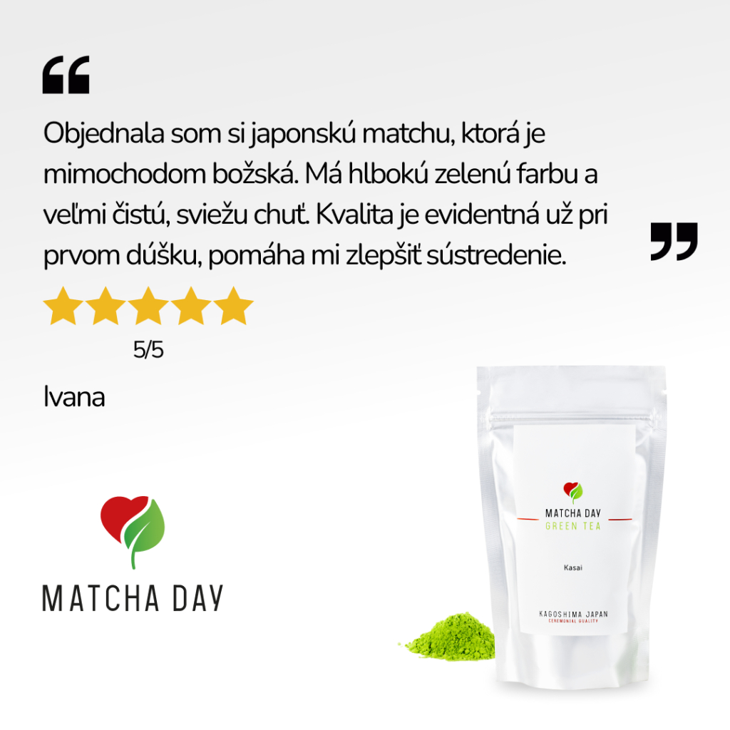 Obchod môžem len a len odporučiť. Vždy všetko prebehlo v poriadku, rýchle odoslanie. Objednala som si na porovnanie všetky druhy matcha čajov (kasai, jimen, mizu) a musím povedať, že kasai je z týchto čajov najlepší, vôbec nie je horký, ma mierne sladkastú chuť oproti čaju mizu, ktorý je fakt že horký, jimen je niečo medzi. Začiatočníkom určite odporúčam kasai. Všetky matcha čaje sú však na vysokej urovni, nemajú žiadnu pachuť trávy ani ničoho iného.