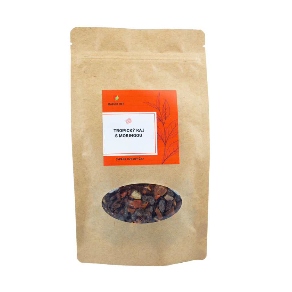 Špeciálnou prísadou, ktorú obsahuje náš sypaný ovocný čaj, sú práve lístky z moringy. Tá patrí medzi nutrične najbohatšie rastliny na svete. Obsahuje až 8 esenciálnych aminokyselín a 36 protizápalových látok, viacero vitamínov, minerálov a antioxidantov, ale aj výnimočný hormón mladosti – zeatín.