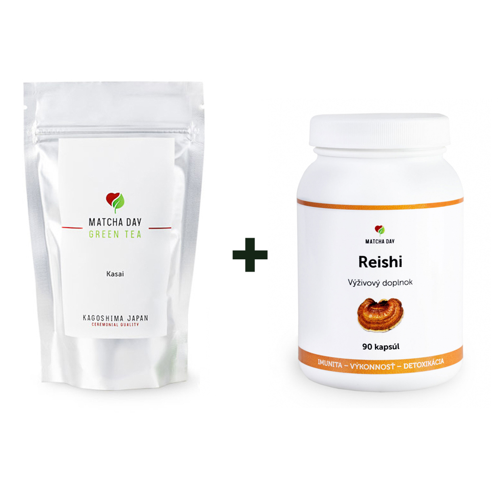 Balík Energia (Matcha Day Kasai 50g + Reishi extrakt 90 kapsúl)